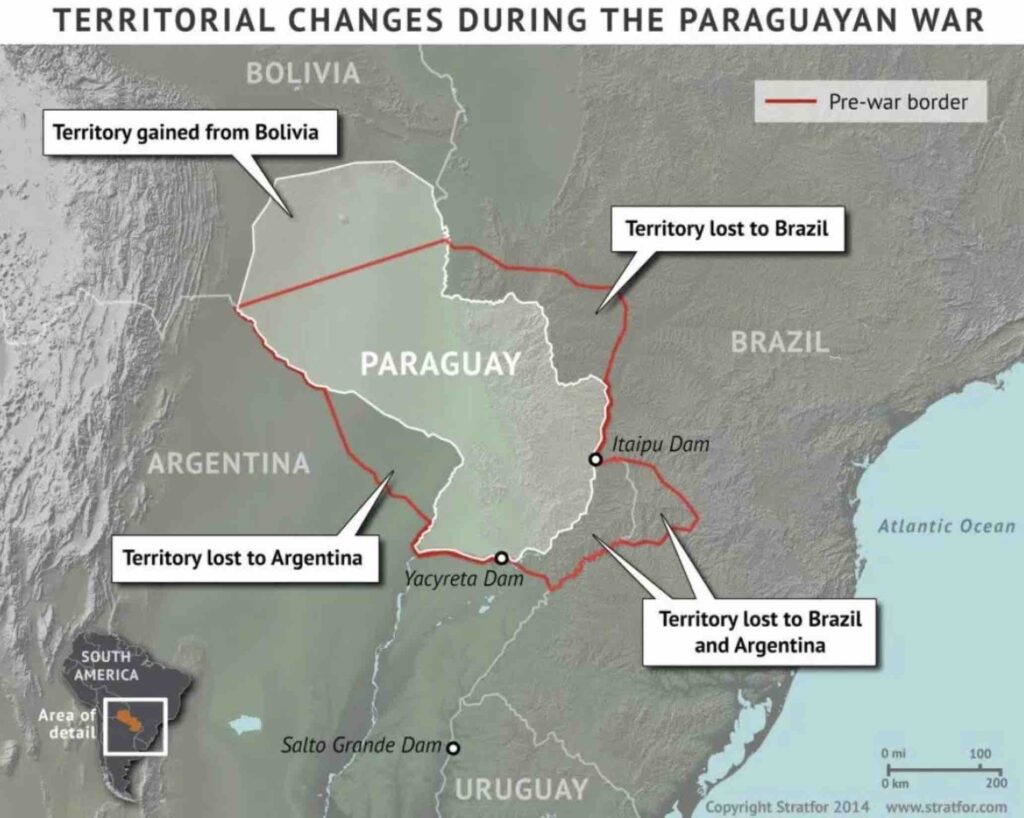 The cost of the war to Paraguay was unimaginable. Over half the population dead, and such a high percentage of the men, that there were estimated to only be 28,000 living men in the entire country. Argentina and Brazil seized all of the disputed territory (about 140,000 square kilometers), and war reparations put most of the remaining land in the hands of foreign owners. Paraguay to this day remains the poorest country in South America.