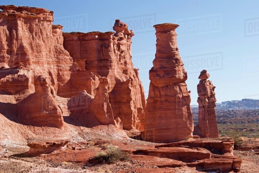 Fossils. Deserts do more than produce fantastic scenery. They give visibility. Wind and sun erode away the exposed surface producing those fantastic sculptures, and they also reveal what is underneath. Without significant coverage by plants, the layers of the ages wear away instead of having new layers laid down on top. And what is revealed is readily visible. Now, we have been traveling across desert for thousands of kilometers, but that was on the west coast, where the exposed rock is fractured and crumpled by the collision of the South American Plate with the Nazca Plate. Much of the exposed rock is igneous rock produced by volcanic action. On the eastern side of the continent, it is very different. The layers of rock that have formed over millions of years are still there, in undisturbed layers. If you think about it; all of the great dinosaur fossil beds are found in stable land masses and in deserts; the Gobi in China and the Western North America. In Argentina’s great deserts the eons have worn the surface away down to the Mesozoic Era… the age of dinosaurs. Dinosaur fossils can be dug up almost anywhere, but the treasure troves are to be found in deserts. Argentina continues to contribute new and spectacular species and a wealth of knowledge about that fascinating time in the history of the earth.