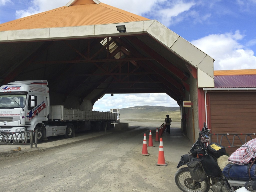 Crossing back into Argentina at San Sebastian, the two border stations are 15 kilometers apart. The first one you come to is the Chile exit station.