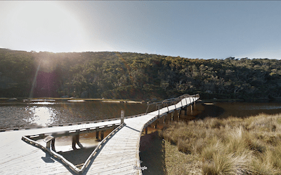 You are landing on a peninsula known as Wilsons Promontory, basically a large island connected to the mainland by a long finger of land. This is one of the largest unspoiled sections of the Australian Bush, and you will get to see the land as it once was while climbing from the Tidal River up into the hills overlooking the Southern Sea.