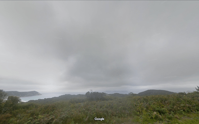 After leaving the beach on Cockle Bay Road you will be traveling north on ravel roads thru the woods, with glimpses of the ocean to your east. After passing Rocky Bay, where you landed, you will pass alongside colorfully named Coalbin Bay and Pigsties Bay before turning into the woods after about 10 kilometers.