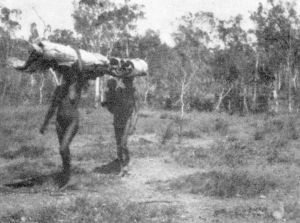 While an environment that could not support a permanent population dictated a nomadic lifestyle, the Aborigines created a variety of tools from the available resources; basically stone, wood, or shell. Smaller tools were carried with them as they moved about their home range, while larger items, such as grindstones, were left on site to be used when they returned. In the more productive areas camps might be used for months on end, while in the arid interior the food supply in a given area would be exhausted in days.