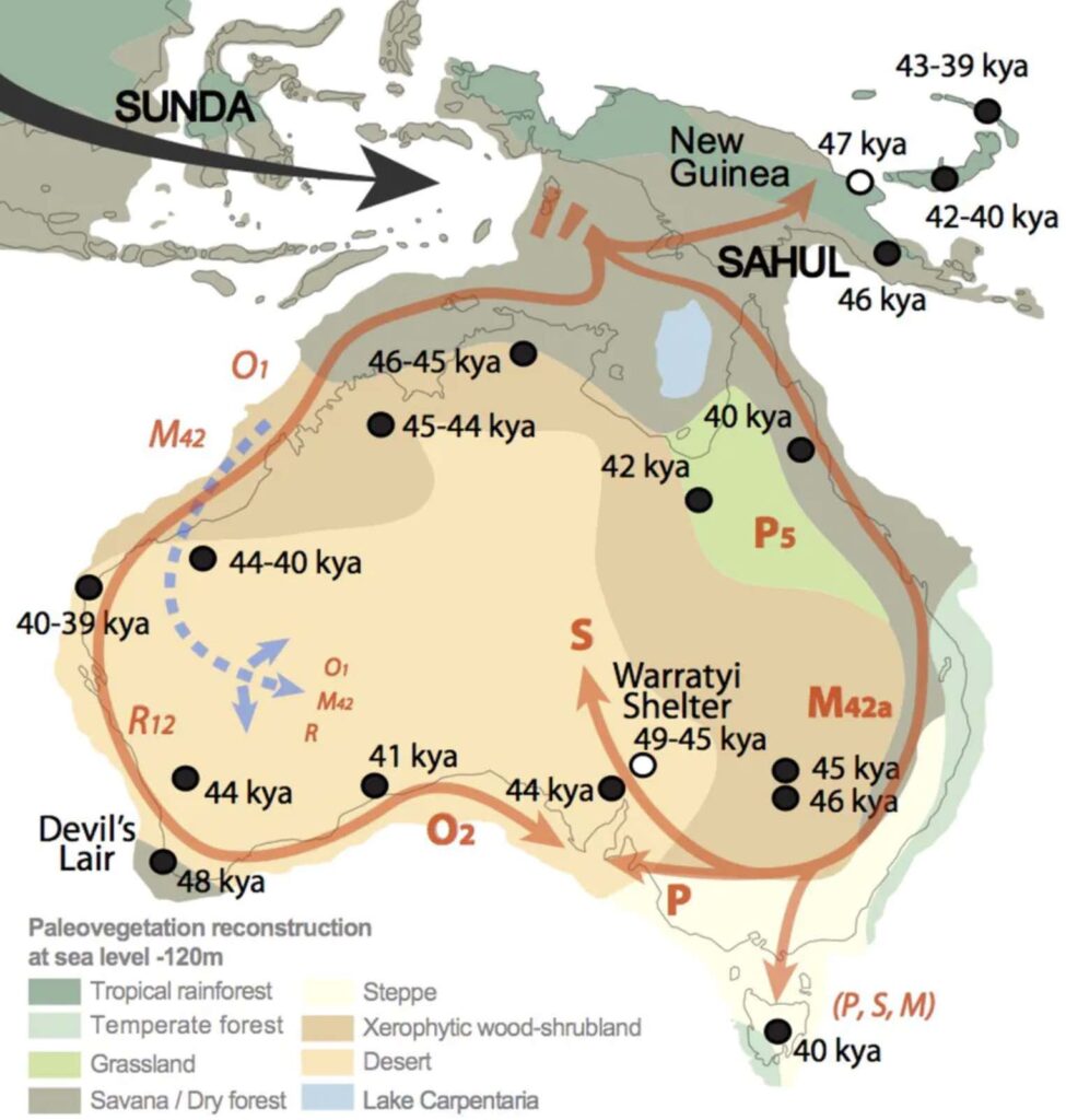 Our new skills with DNA clinched it. There are genetic markers found only in New Guinean natives and Australian Aborigines, and in no other human population. That pretty well proves their close relationship. The first Australians walked there when the sea levels were low. And they were then stranded when the levels rose.