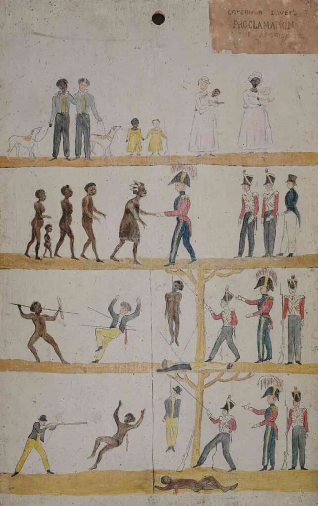 Tasmania was the last aboriginal land to be invaded, and as they had elsewhere, the native people resisted to the best of their ability. But, where the mainland population had probably been around a million, there were only 7-10,000 inhabitants on Tasmania. Theoretically, the inhabitants of lands claimed by Britain became subjects of the King, entitled to the same legal protections. In practice it worked out very differently. And, from a practical standpoint, there is no peaceful way to displace people from their homes, eat or destroy their food sources, and leave them no way to exist.