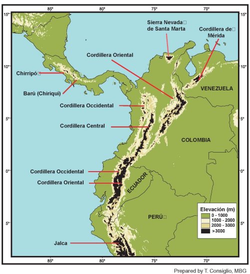 Let me break away here to explain that the Andes Mountain chain splits into three separate ridges of mountains north of the Ecuador-Colombia line. The easternmost is called the Oriental Andes. It curves eastward all the way to the Venezuela border, where it makes almost a right angle turn to the north and goes on to the Caribbean Coast.