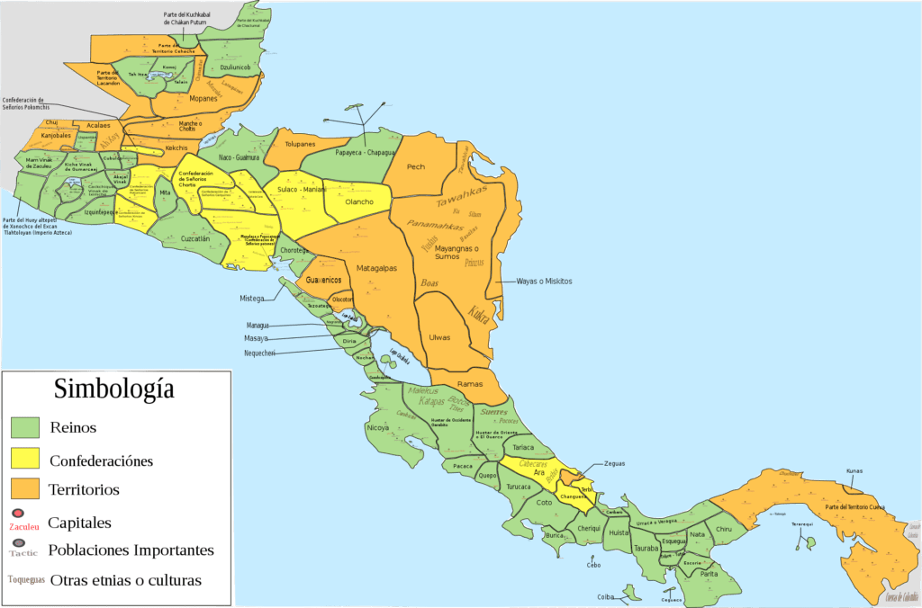 Map by Juan Migue showing the political makeup of Central America at the time of the conquest gives an idea of the complexity of Mesoamerica at the time.
