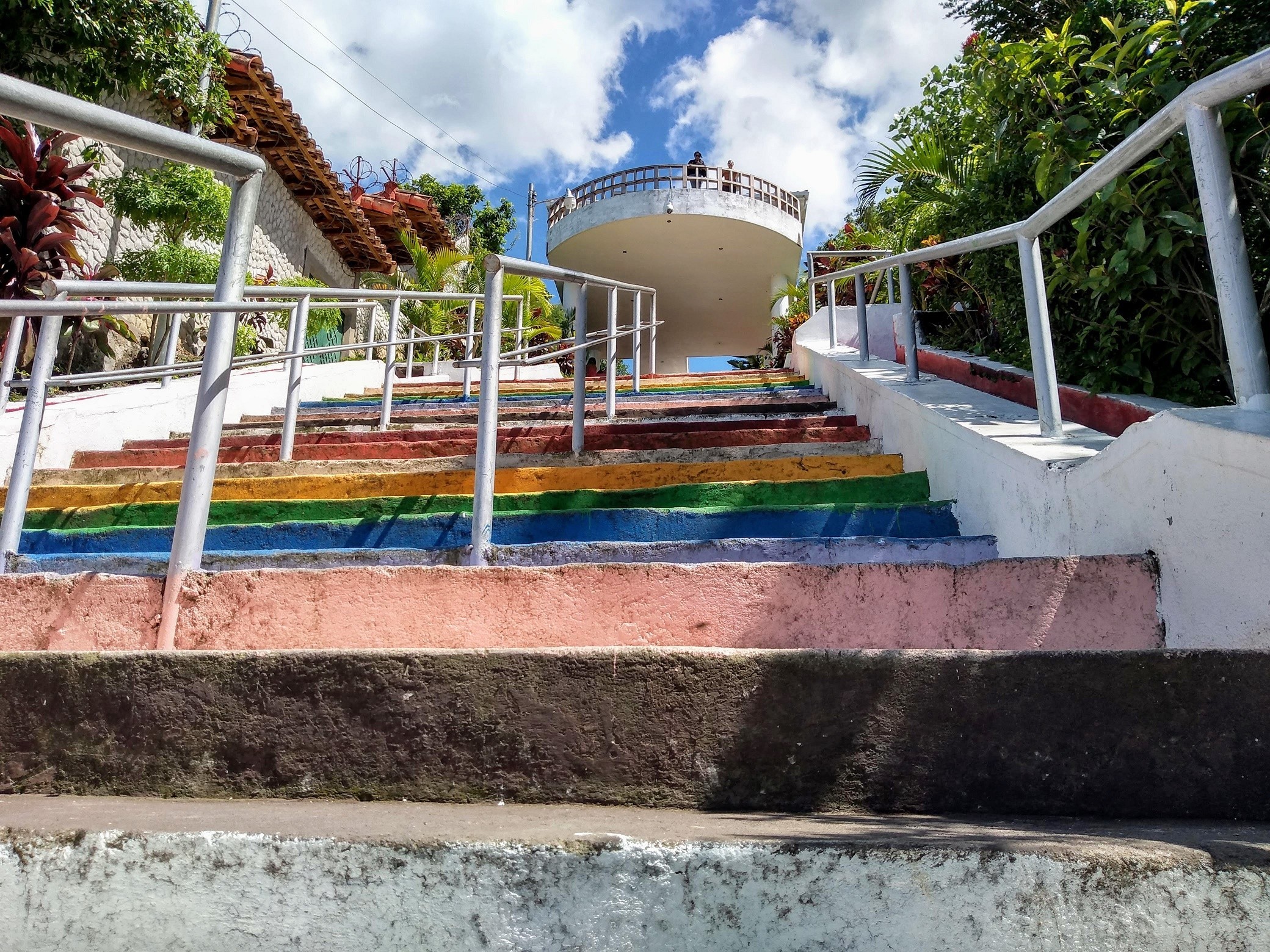 One of my favorite places I have been to in El Salvador is the Las Cien Grados in Alegria. Alegria has a somewhat higher elevation than San Miguel so it always feels cooler, which is a relief. Cien Grados, or One Hundred Steps, overlooks the surrounding valleys and hillsides where lots and lots of coffee is grown. I’ve raced a couple of young men up these steps and it got my heart rate up, for sure. There’s not a lot of places I feel safe running when I’m down there, so I take what I can get.
