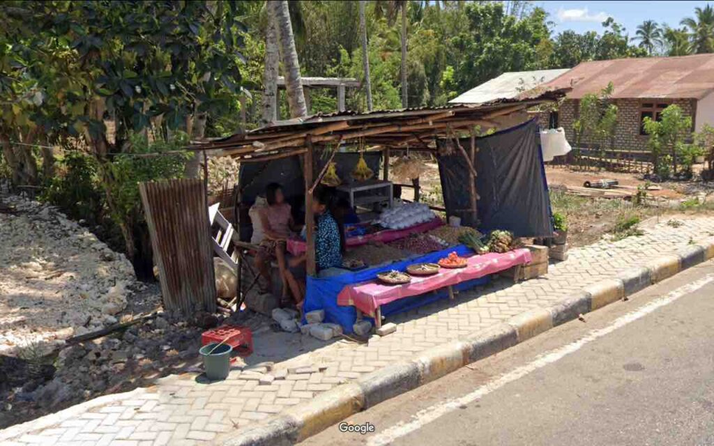 About the only place to get food before you reach Kupang will be at roadside markets. Don’t be expecting any exotic local foods, as markets in Indonesia have mostly fast foods: U.S. apples, table grapes, oranges, lemons, processed vegetables (French fries), processed fruits (dates, raisins, jams, nut paste); snack foods and juices.